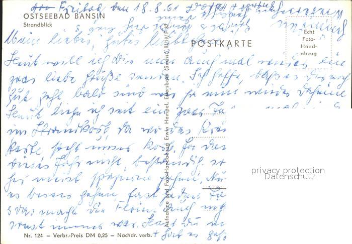 71986676 alte Postkarte Bansin Ostseebad Strandblick postalisch gelaufen Erhaltung siehe scans KatCode: 11110013059112