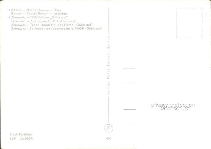 72416690 Bansin Ostseebad Strandpartie Zinnowitz FDGB Heim Glueck auf postalisch nicht gelaufen Erhaltung siehe scans KatCode: 11110013059112
