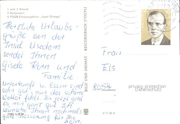 72357464 alte Postkarte Bansin Ostseebad Strandpartien Kurkonzert FDGB Heim Josef Orlopp postalisch gelaufen Erhaltung siehe scans KatCode: 11110013059112