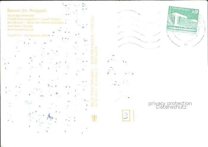 72138752 alte Postkarte Bansin Ostseebad Strandpromenade FDGB Erholungsheim Josef Orlopp Strand Karl Marx Str Fischerstrand postalisch gelaufen Erhaltung siehe scans KatCode: 11110013059112
