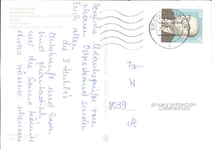 72304517 alte Postkarte Bansin Ostseebad Strandpromenade Karl-Marx-Strasse Fischerstrand postalisch gelaufen Erhaltung siehe scans KatCode: 11110013059112