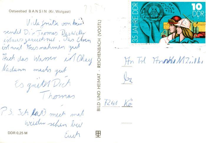 73879486 alte Postkarte Bansin Ostseebad Zeltplatz Strand Restaurant Kuestenpanorama Sonnenuntergang postalisch gelaufen Erhaltung siehe scans [FriedD77] KatCode: 11110013059112
