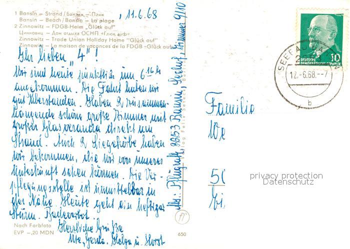 73128259 alte Postkarte Bansin Ostseebad Zinnowitz Heim Glueck auf postalisch gelaufen Erhaltung siehe scans [PaolaD17] KatCode: 11110013059112