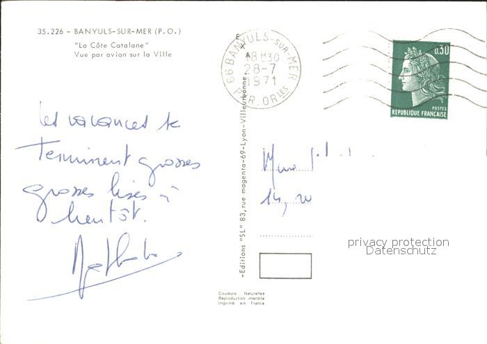 12065759 carte postale Banyuls-sur-Mer La Cote Catalane Vue aerienne sur la Ville postalisch gelaufen Erhaltung siehe scans KatCode: 11170066166016