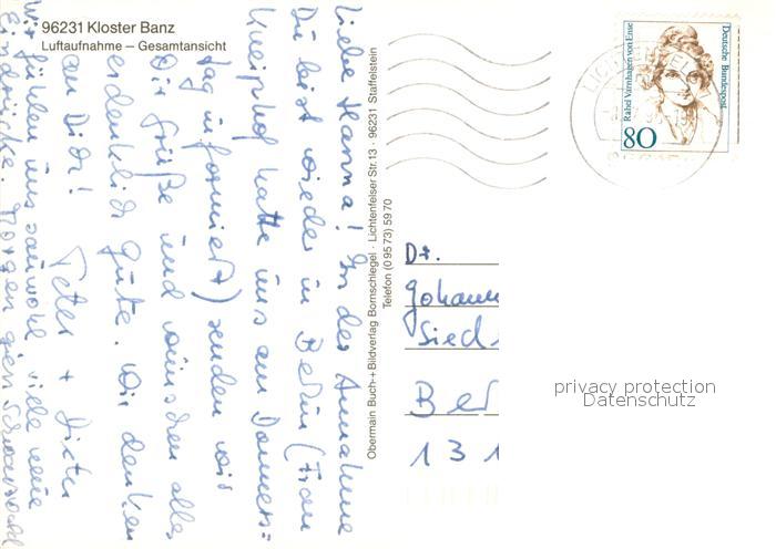 73725423 alte Postkarte Banz Bad Staffelstein Kloster Banz Fliegeraufnahme postalisch gelaufen Erhaltung siehe scans [WerneD78] KatCode: 11110009478165