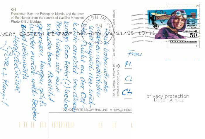 72708400 old postcard Bar Harbor Frenchman Bay postalisch gelaufen Erhaltung siehe scans [AndreD76] KatCode: 14140210000000