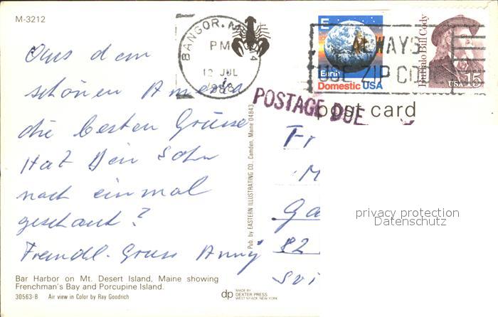 11688180 old postcard Bar Harbor Frenchman’s Bay Porcupine Island aerial view postalisch gelaufen Erhaltung siehe scans KatCode: 14140210000000