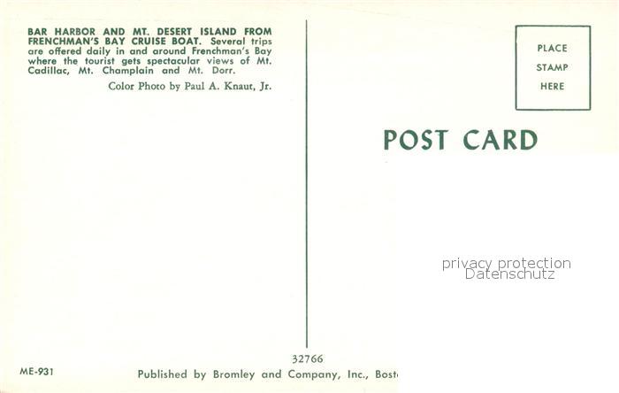 73131647 Bar Harbor Mont Desert Island Frenchmans Bay Cruise Boat postalisch nicht gelaufen Erhaltung siehe scans [KathaD81] KatCode: 14140210000000