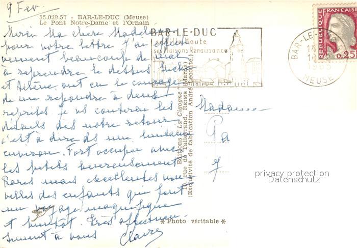 carte postale Bar-le-Duc Pont Notre Dame et l’Ornain postalisch gelaufen Erhaltung siehe scans [FriedD77]