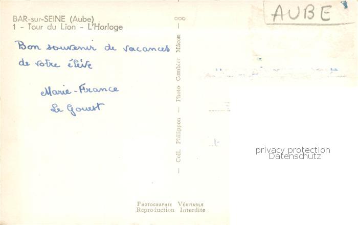 13780822 Bar-sur-Seine 10 Tour du Lion l Horloge postalisch nicht gelaufen Erhaltung siehe scans [WerneD78] Wern Katcode 11170010310034