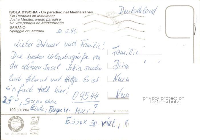 old postcard Barano Stadtansicht postalisch gelaufen Erhaltung siehe scans