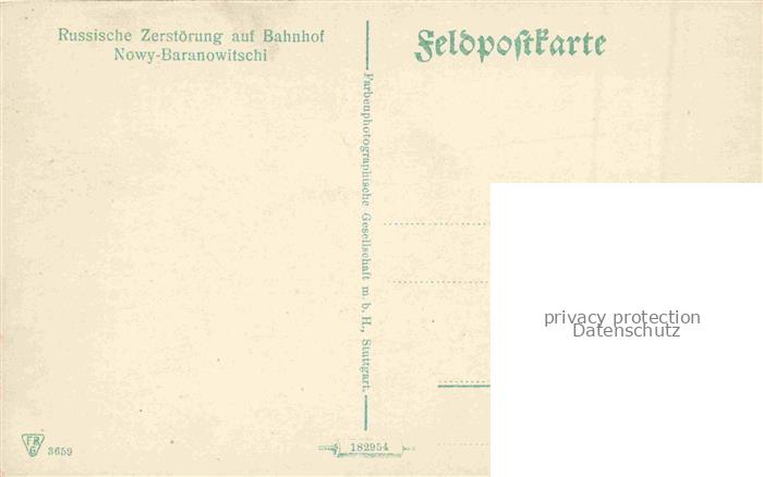 74021479 Baranowitschi BARANAWITSCHY Baranowitz Belarus Russische Zerstoerung auf Bahnhof postalisch nicht gelaufen Feldpost auf Karte (Motiv) Erhaltung siehe scans [WerneD78] KatCode: 11060
