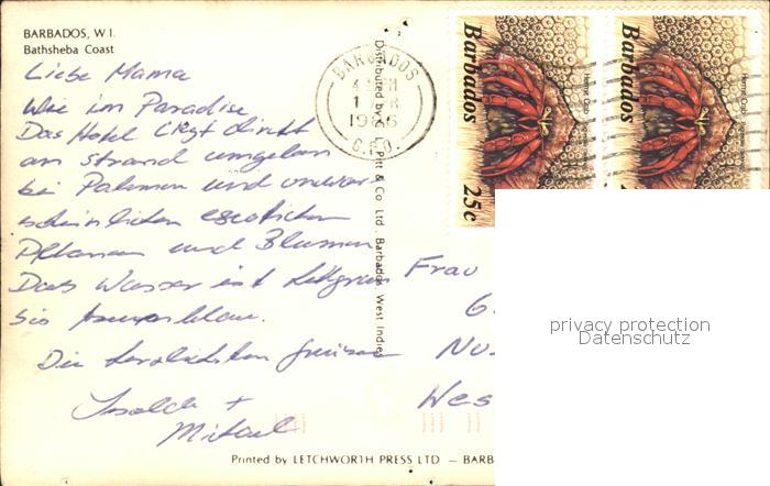alte Postkarte Barbados Bathsheba Coast postalisch gelaufen Erhaltung siehe scans
