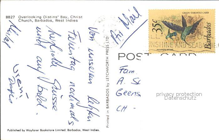alte Postkarte Barbados Oistins Bay Christ Church postalisch gelaufen Erhaltung siehe scans [AndreD76 kt121box]