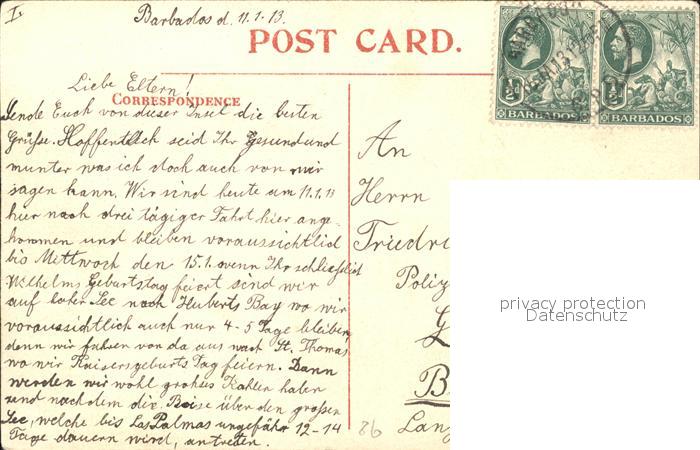 31881982 old postcard Barbados Public Building Chamberlain Bridge postalisch gelaufen Erhaltung siehe scans KatCode: 16070
