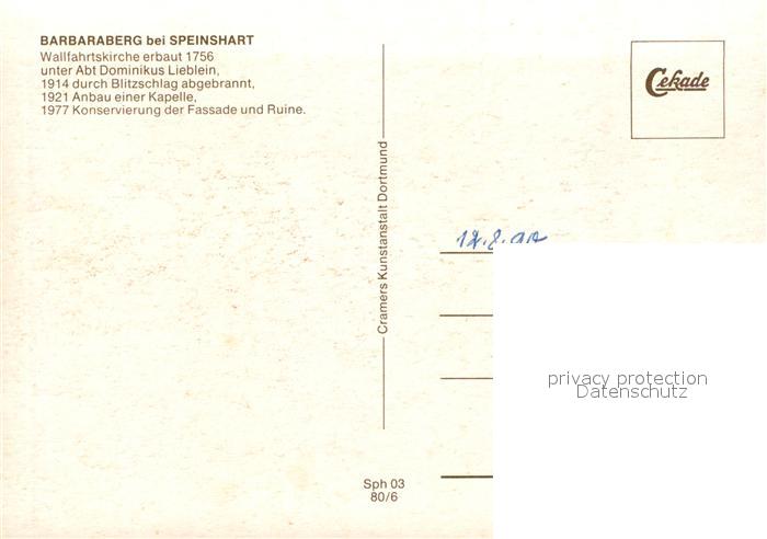 73208434 Barbaraberg Wallfahrtskirche postalisch nicht gelaufen Erhaltung siehe scans [WerneD78] KatCode: 11110009374157