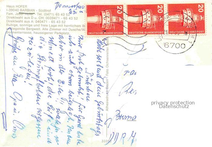 74132307 old postcard Barbian Barbiano Waidbruck Bolzano IT Gaestehaus Haus Hofer postalisch gelaufen Erhaltung siehe scans [FriedD77] KatCode: 11240