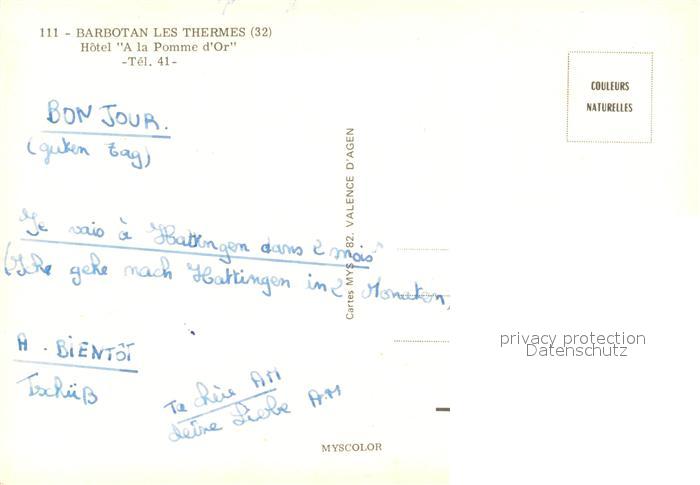 13720603 Barbotan les Thermes Hôtel A la Pomme d Or postalisch nicht gelaufen Erhaltung siehe scans [FriedD77] Frie Katcode 11170032132013