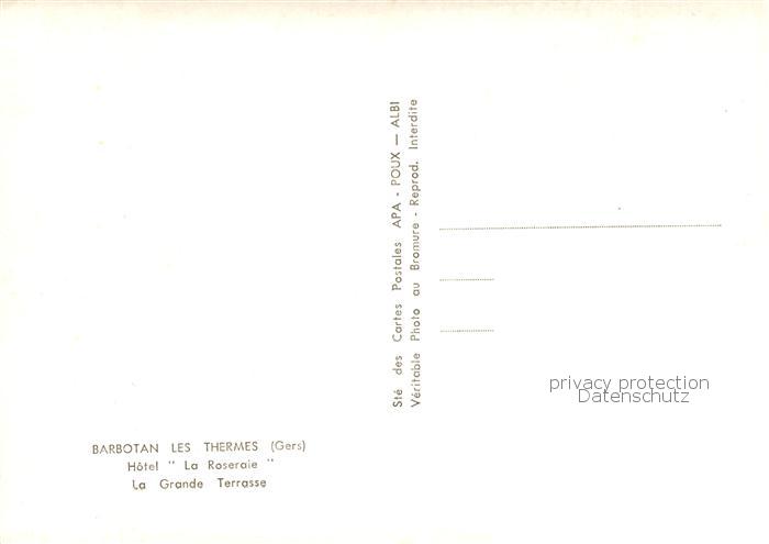 13787758 Barbotan les Thermes Hotel la Roseraie La Grande Terrasse postalisch nicht gelaufen Erhaltung siehe scans [WerneD78] Wern Katcode 11170032132013