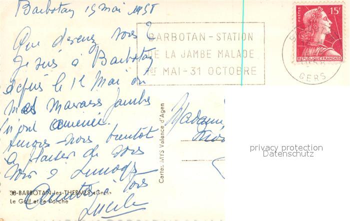 13724547 Barbotan les Thermes Le Golf et le Porche postalisch gelaufen Erhaltung siehe scans [WerneD78] carte postale Wern Katcode 11170032132013