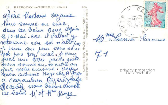 13585334 Barbotan les Thermes Stadtansichten postalisch gelaufen Erhaltung siehe scans [KathaD81] carte postale Kath Katcode 11170032132013