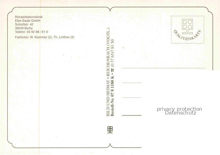 74022621 Barby Elbe Rehabilitationsklinik Elbe-Saale im Biospaerenreservat Mittlere Elbe postalisch nicht gelaufen Erhaltung siehe scans [FriedD77] KatCode: 11110015089025