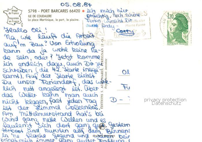 13742322 Barcares Le Coudalere La place Martinique le port la piscine postalisch gelaufen Erhaltung siehe scans [FriedD77] carte postale Frie Katcode 11170066266017