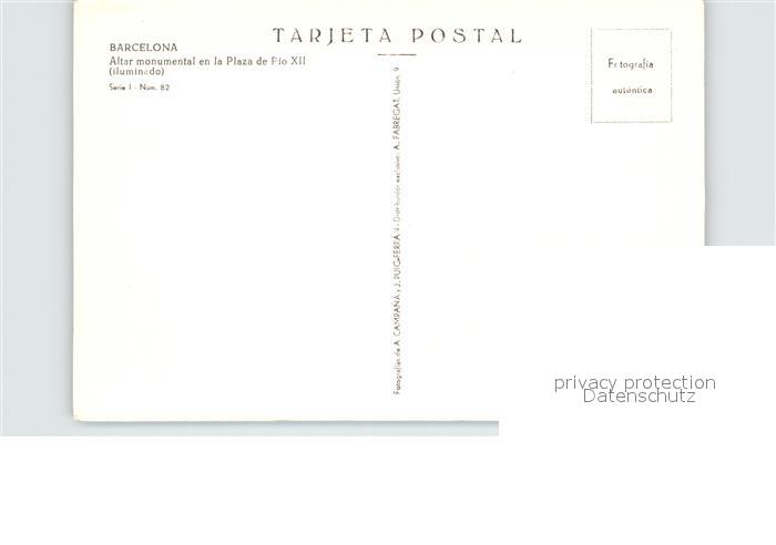 Barcelona Cataluna Altar monumental Plaza de Pio XII postalisch nicht gelaufen Erhaltung siehe scans [FriedD77]