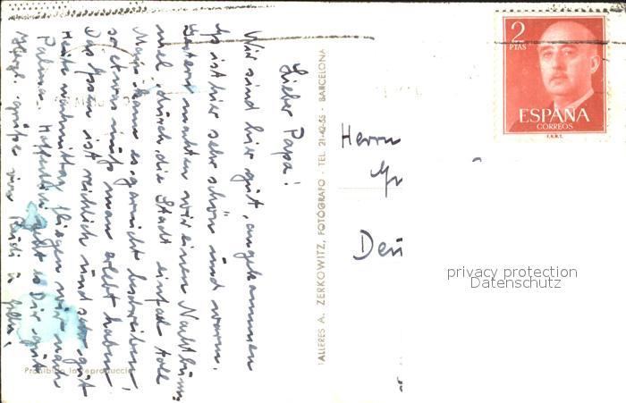 old postcard Barcelona Cataluna Avda del Ceneralisimo Franco postalisch gelaufen