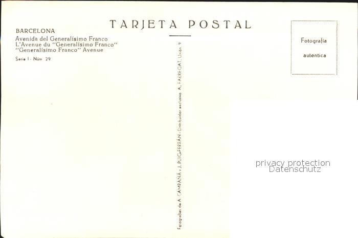 Barcelona Cataluna Avenida del Generalisimo Franco postalisch nicht gelaufen Erhaltung siehe scans [FriedD77]