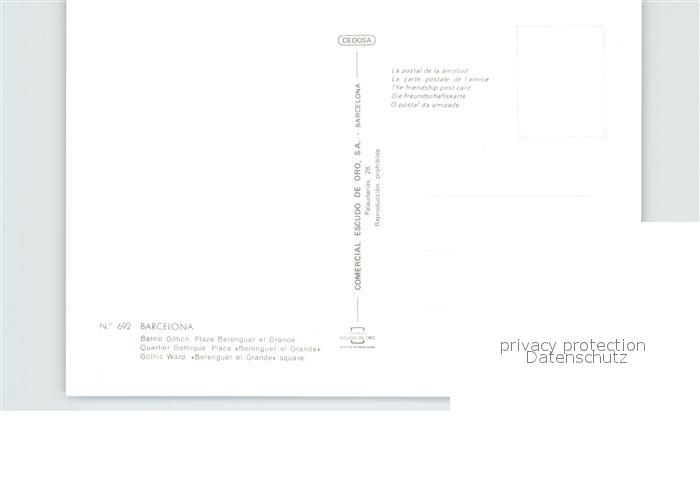 Barcelona Cataluna Barrio Gotico Plaza Berenguer el Grande de noche postalisch nicht gelaufen Erhaltung siehe scans [FriedD77 kt114box]