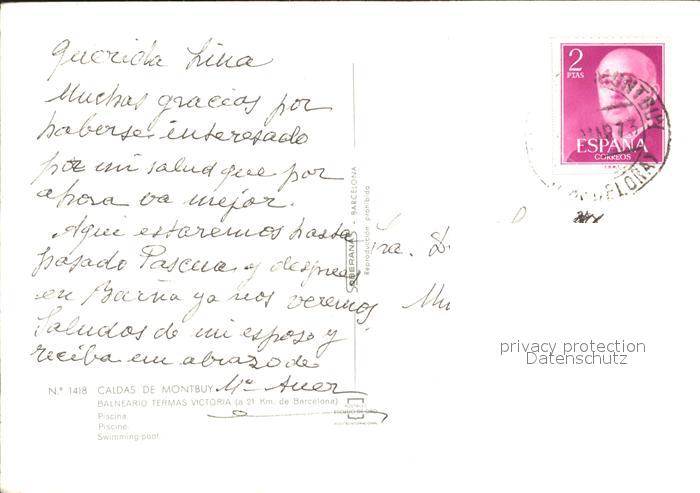old postcard Barcelona Cataluna Caldas de Monbuy postalisch gelaufen Erhaltung siehe scans