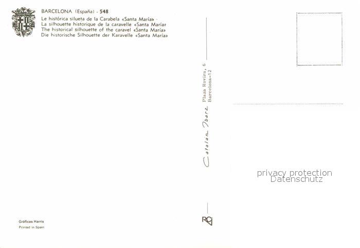 Barcelona Cataluna Carabela Santa Maria postalisch nicht gelaufen Erhaltung siehe scans [NatalD47]