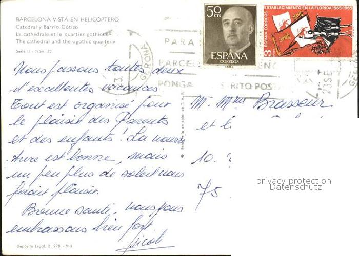 old postcard Barcelona Cataluna Catedral y Barrio Gotico postalisch gelaufen Erhaltung siehe scans