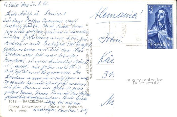 old postcard Barcelona Cataluna Ciudad Universitaria Palacio de Pedralbes vista aerea postalisch gelaufen Erhaltung siehe scans