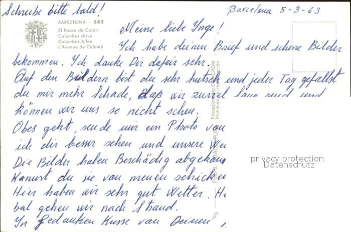 Barcelona Cataluna Columbus Allee postalisch nicht gelaufen Erhaltung siehe scans
