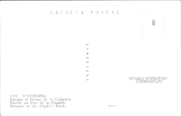 Barcelona Cataluna Entrada al Parque de la Ciudadela postalisch nicht gelaufen Erhaltung siehe scans