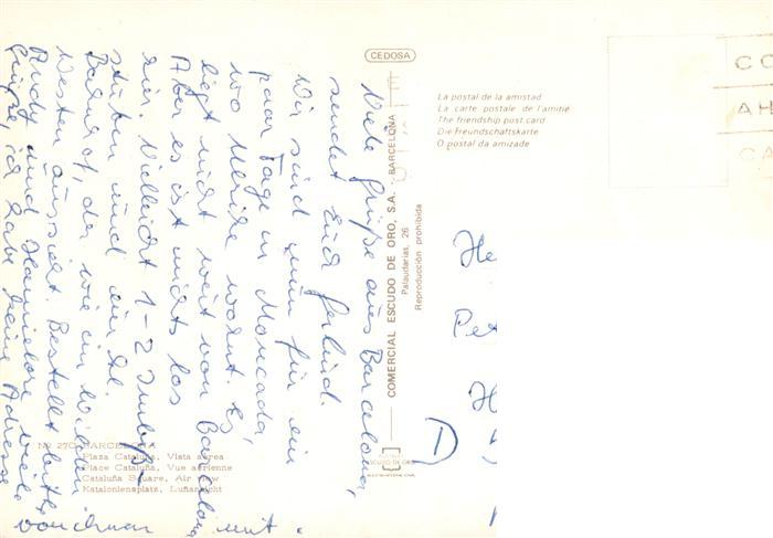 old postcard Barcelona Cataluna ES Plaza Cataluna vista aérea postalisch gelaufen Fliegeraufnahme Erhaltung siehe scans [FriedD77]