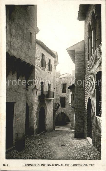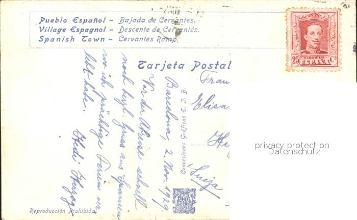 old postcard Barcelona Cataluna Exposicion Internacional de 1929 Pueblo Espanol Bajada de Cervantes postalisch gelaufen Erhaltung siehe scans