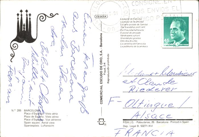 old postcard Barcelona Cataluna Fliegeraufnahme Stadt Wappen postalisch gelaufen Erhaltung siehe scans