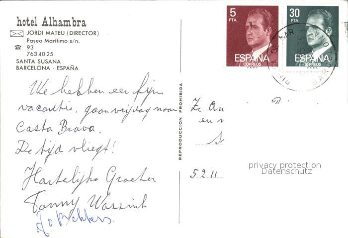 old postcard Barcelona Cataluna Hotel Alhambra postalisch gelaufen Erhaltung siehe scans