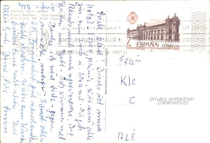 old postcard Barcelona Cataluna Hotel Rey Mar postalisch gelaufen Erhaltung siehe scans