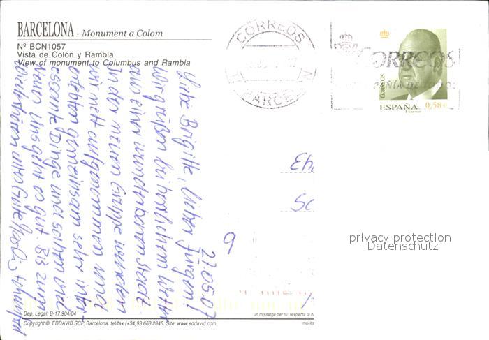 old postcard Barcelona Cataluna Monument a Colom Rambla postalisch gelaufen Erhaltung siehe scans