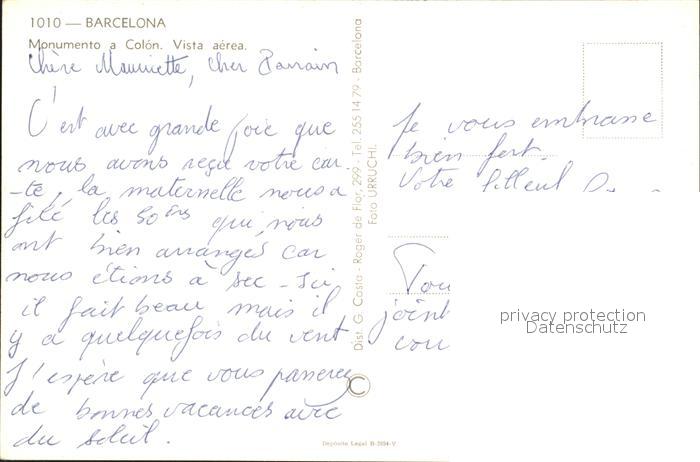 Barcelona Cataluna Monumento a Colon Vista aerea postalisch nicht gelaufen Erhaltung siehe scans