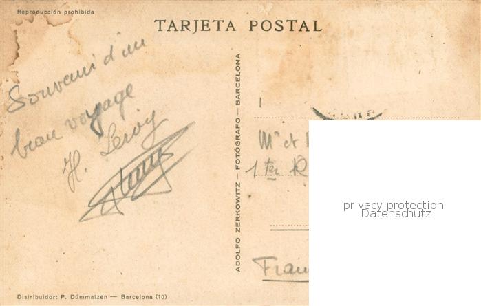 old postcard Barcelona Cataluna Monumento a Colón y Puerta de la Paz postalisch gelaufen Erhaltung siehe scans [FriedD77]