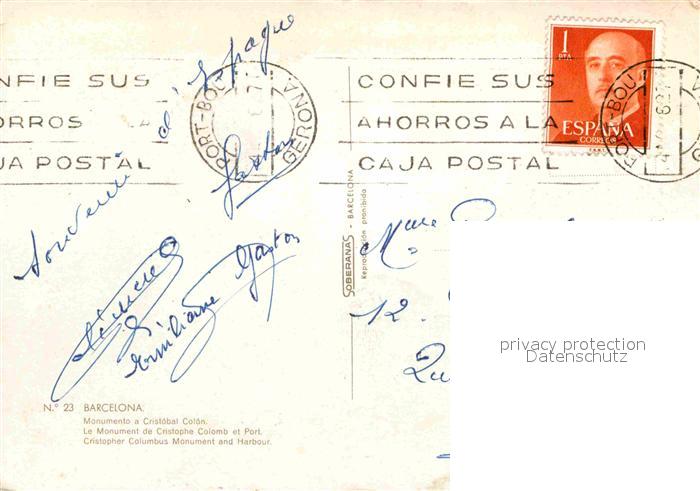 old postcard Barcelona Cataluna Monumento a Cristobal Colon postalisch gelaufen Erhaltung siehe scans [WerneD78]