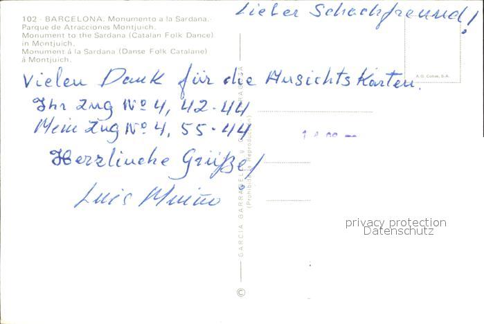Barcelona Cataluna Monumento a la Sardana Parque de Atracciones Montjuich Denkmal Freizeitpark postalisch nicht gelaufen Erhaltung siehe scans