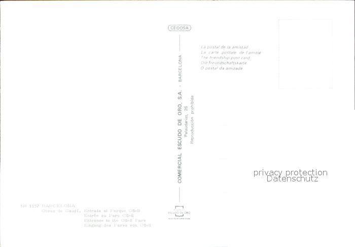 Barcelona Cataluna Obras de Gaudi Entrada al Parque Gueell postalisch nicht gelaufen Erhaltung siehe scans