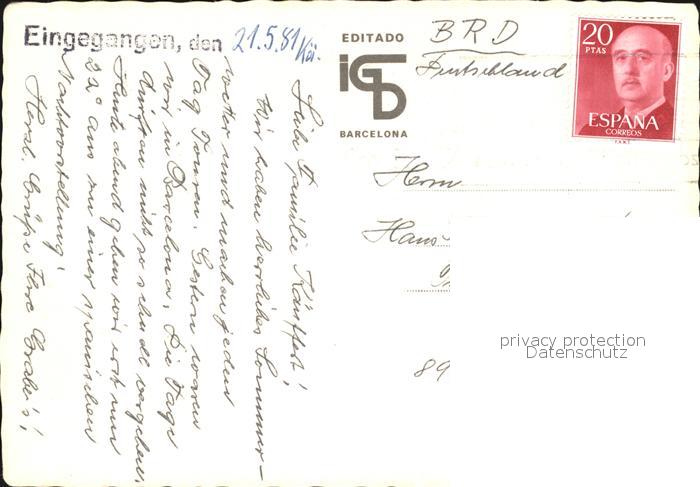 old postcard Barcelona Cataluna Parque de Montjuich y Feria postalisch gelaufen Erhaltung siehe scans