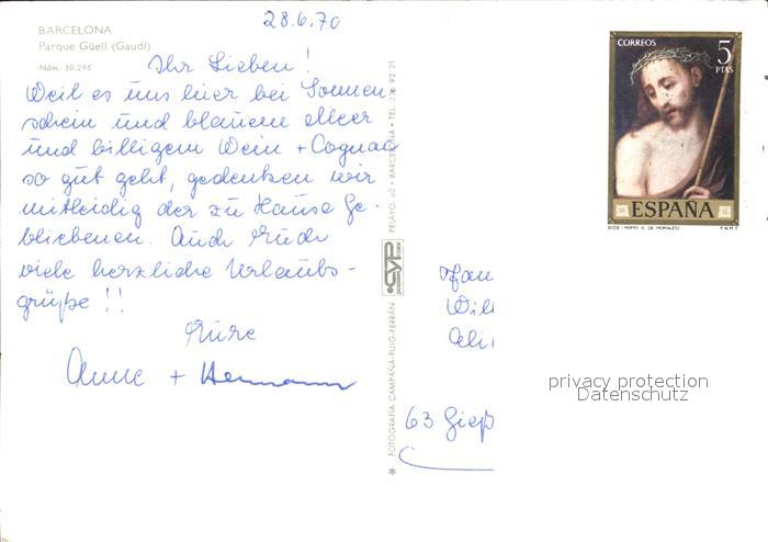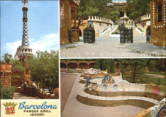 old postcard Barcelona Cataluna Parque Gueell Gaudi postalisch gelaufen Erhaltung siehe scans